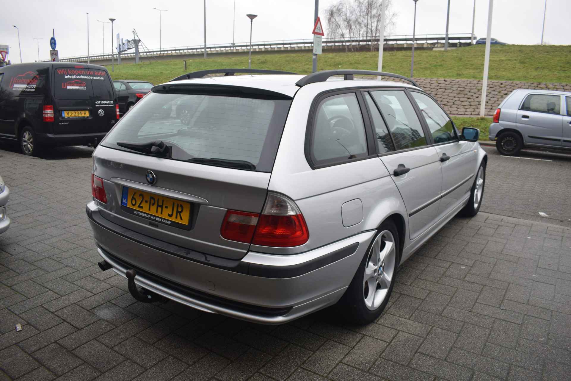Met zijn dynamische eigenschappen belooft deze BMW 3-serie Touring u een heleboel rijplezier. Hij is ontwikkeld op een geavanceerd onderstel en biedt altijd een veilig weggedrag. Hij heeft een benzinemotor en een handgeschakelde vijfversnellingsbak. De elektrisch bedienbare achterklep opent met een druk op de knop. Bij de zeer complete uitrusting van deze auto behoren ook 16 inch lichtmetalen velgen, in hoogte verstelbare voorstoelen, getint glas en in delen neerklapbare achterbank.