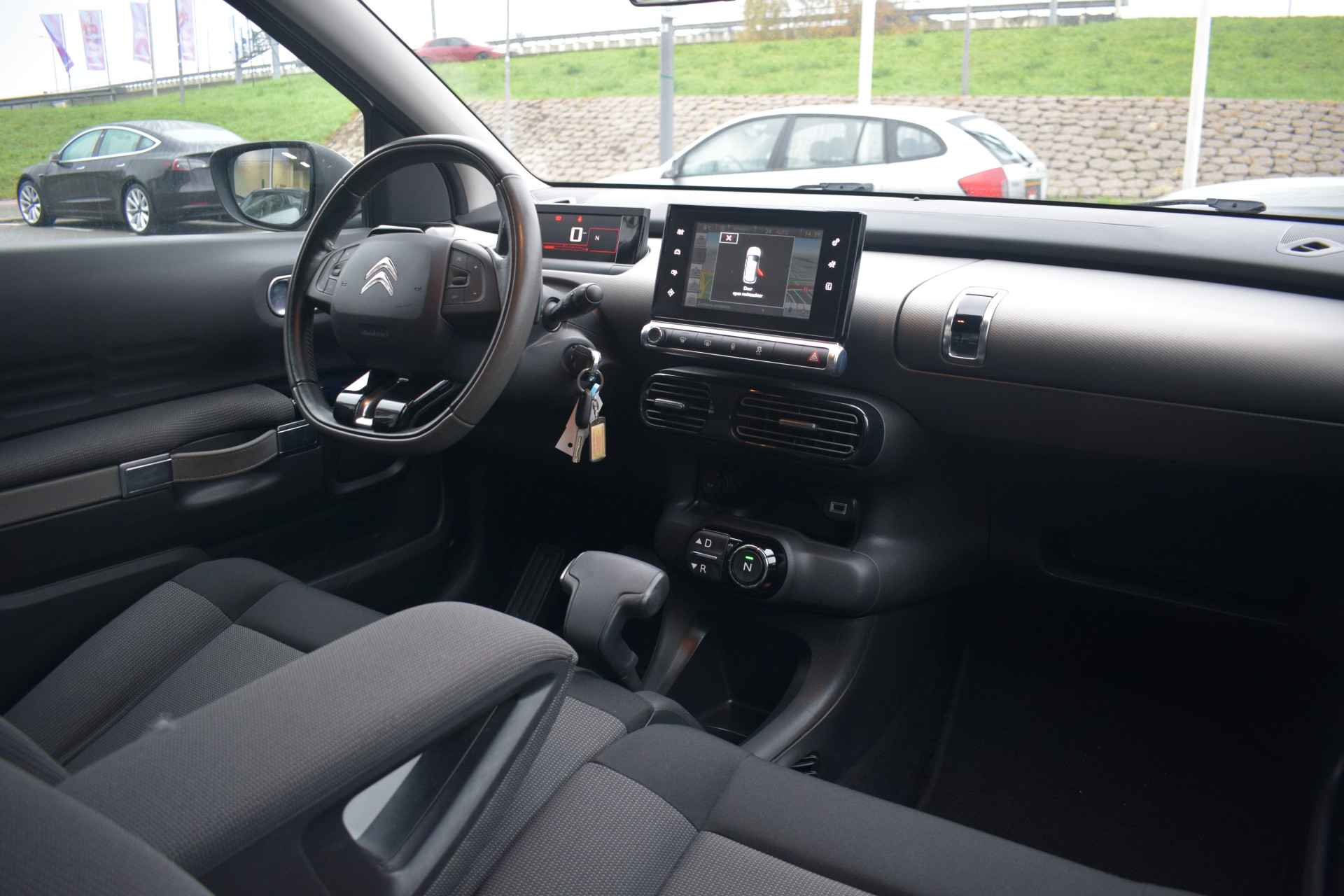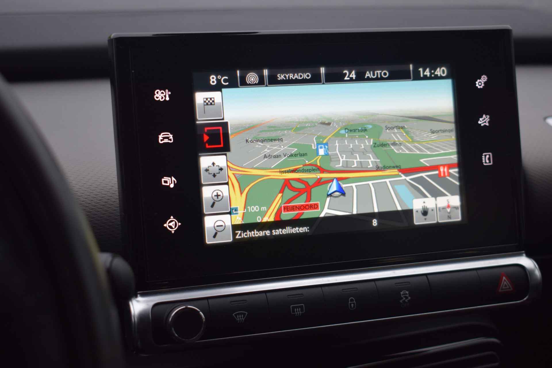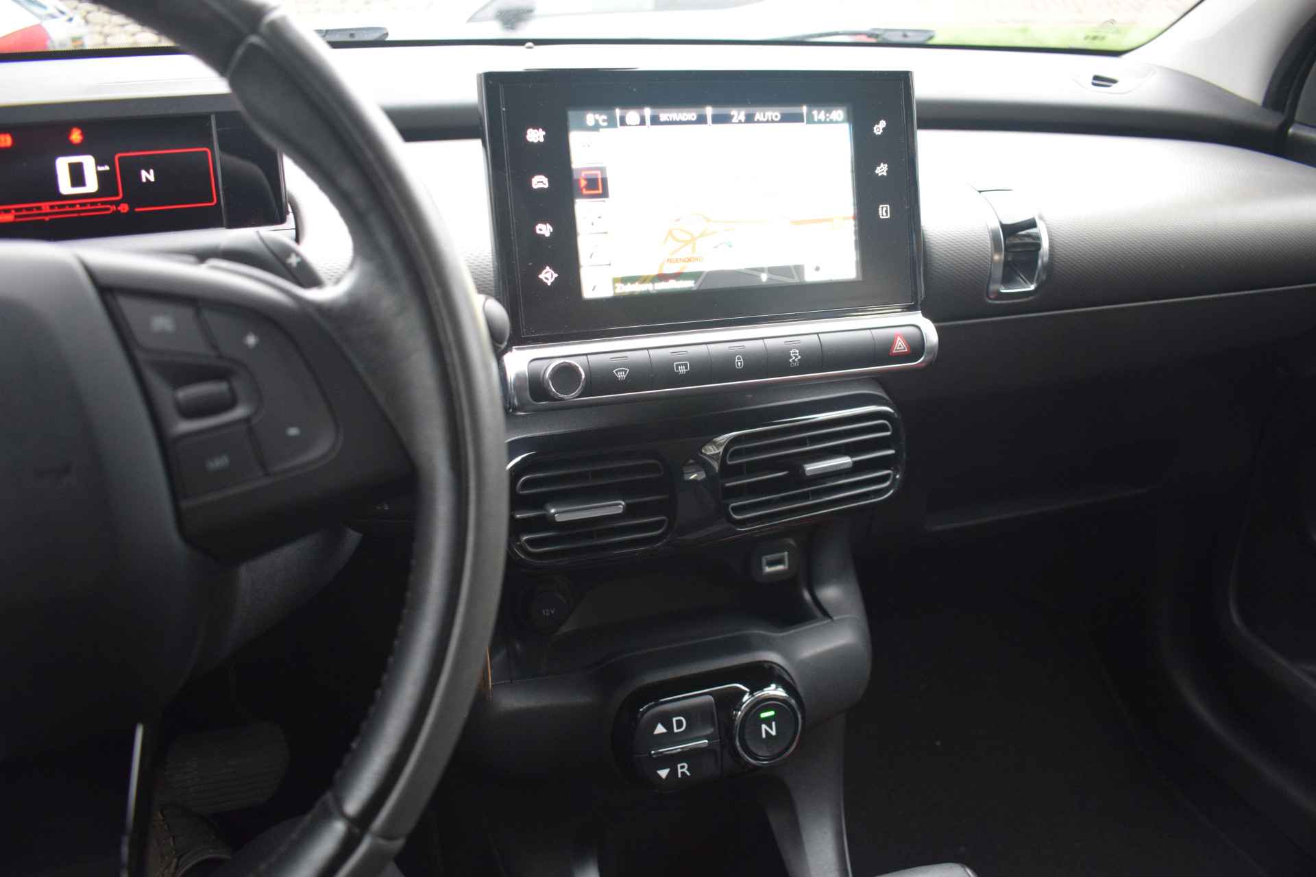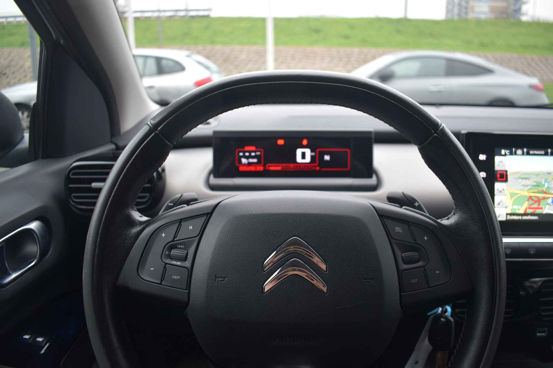 De achteruitrijcamera brengt precies in zicht wat zich achter u bevindt en toont een glashelder beeld op hoge resolutie. Een geluidssignaal waarschuwt hoeveel ruimte u nog heeft. De automatische airconditioning zorgt voor een behaaglijk klimaat in de auto. Natuurlijk is een complete auto als deze ook voorzien van sensoren die de omgeving in de gaten houden. Deze Citroën heeft niet alleen een automatisch inschakelbare verlichting aan boord, maar ook een regensensor. De cruise control zorgt voor een prettige, gelijkmatige koers en minder brandstofgebruik. Wat u ook in deze auto kunt vinden zijn navigatiesysteem, lederen stuur en centrale deurvergrendeling met afstandsbediening.