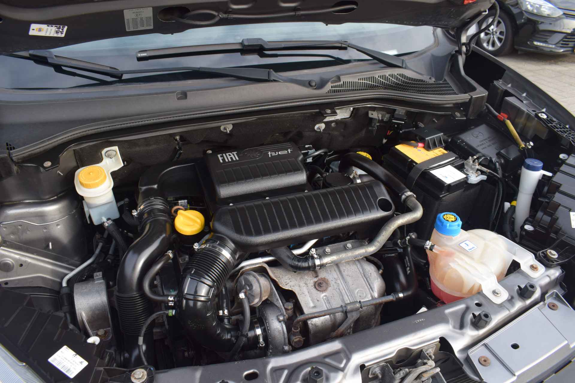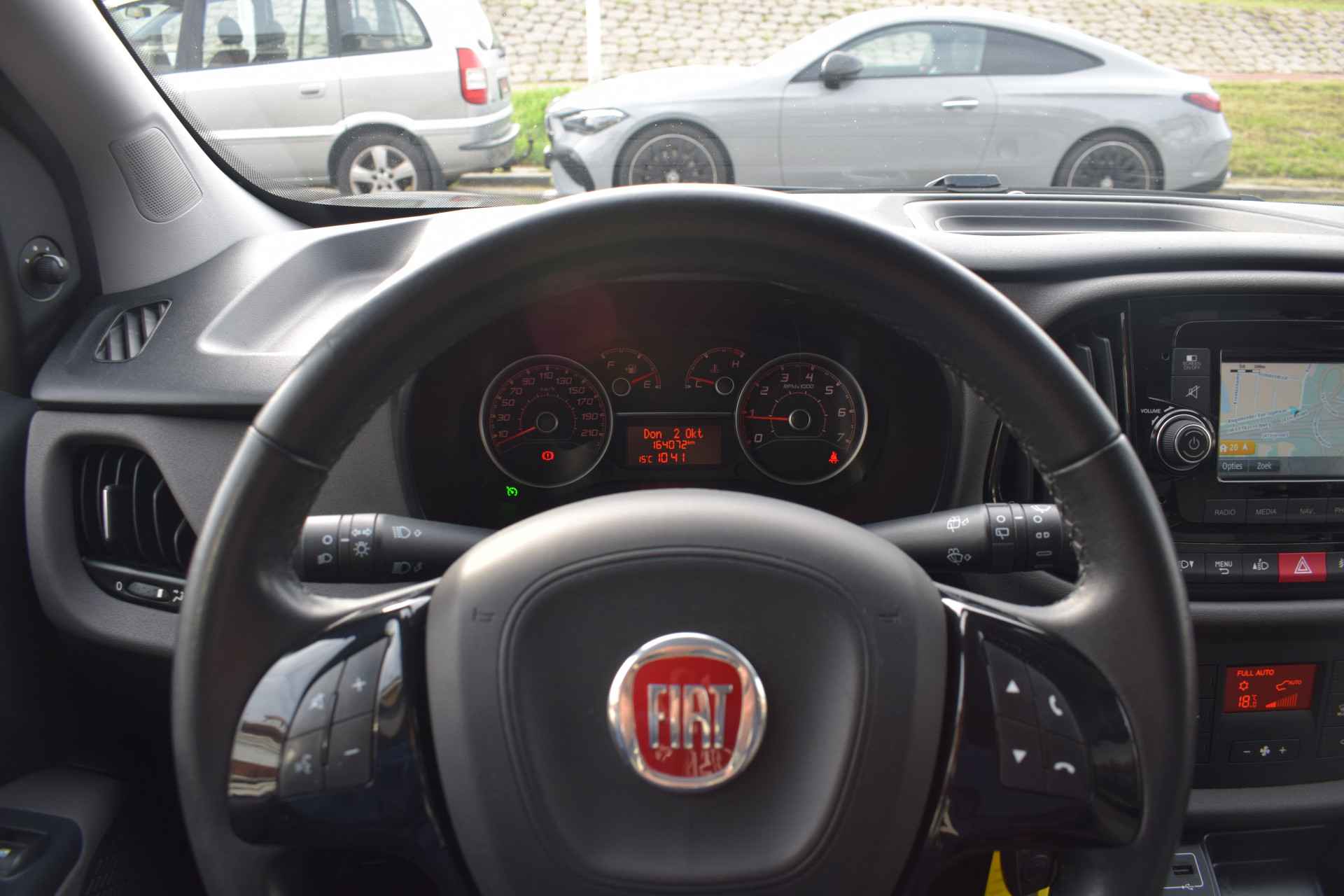 Het navigatiesysteem brengt u soepel en vlot naar uw bestemming. Natuurlijk is er ook automatische airconditioning aanwezig. U hoeft het stuur geen moment los te laten om de audio aan te passen. De audiobediening op het stuur is een veilige en praktische oplossing. Geniet van een ruime selectie digitale radiostations met de DAB-ontvanger. De aanwezige parkeersensoren zijn de ultieme hulp om te laten weten hoeveel ruimte er nog is om te manoeuvreren. De uitrusting van deze Fiat is met cruise control, buitentemperatuurmeter, lederen stuur, centrale deurvergrendeling met afstandsbediening en bagage afdekhoes behoorlijk compleet.