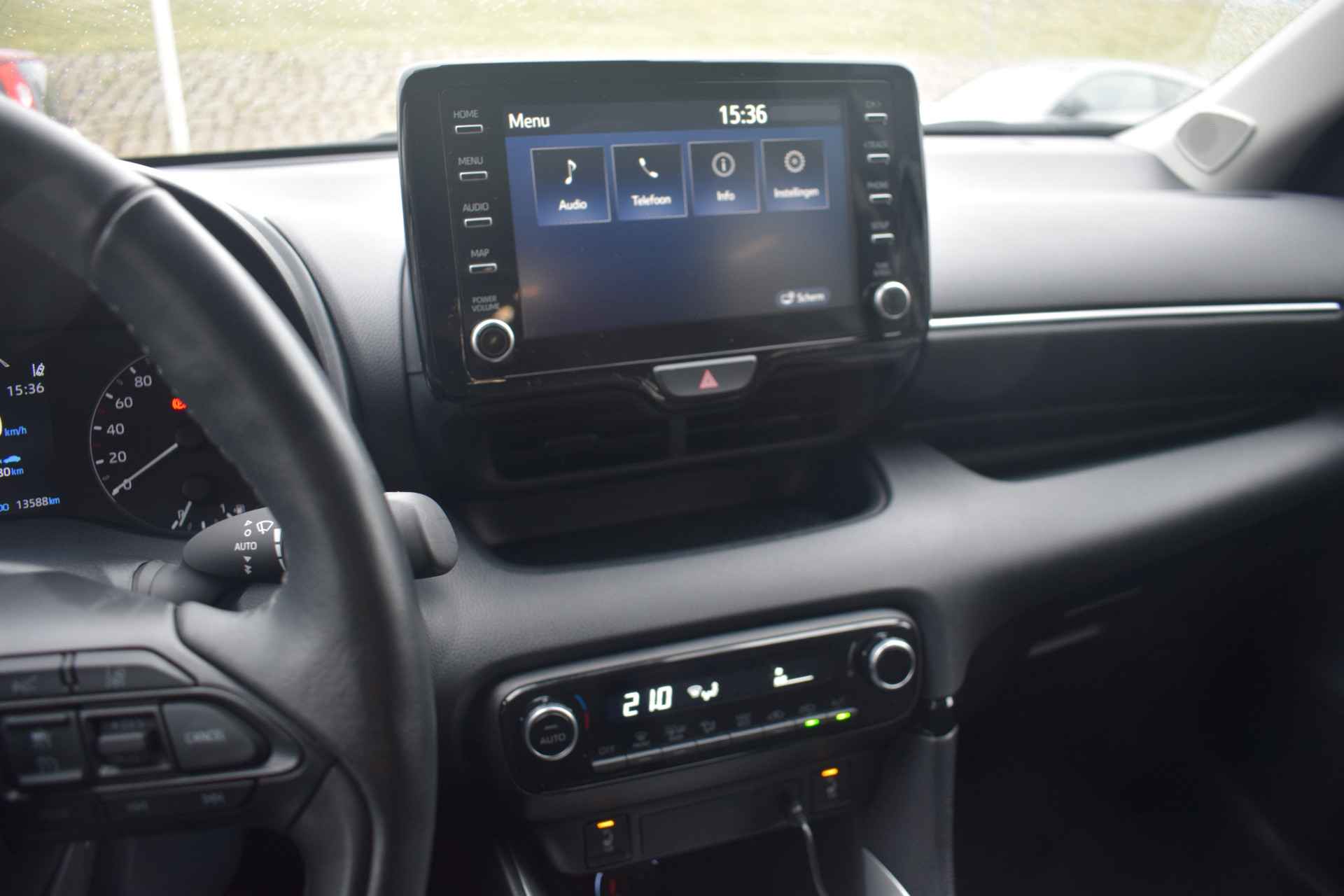 Met het digitale dashboard kunt u de cockpit-interface naar uw voorkeur instellen. Alles vrij achter? De achteruitrijcamera laat het meteen zien. Adaptive cruise control houdt de ingestelde snelheid vast en houdt afstand tot het voertuig voor u. Functies activeren en storingen opsporen? Bij deze auto gaat het eenvoudig via uw smartphone. Overal en altijd. Een belangrijke veiligheidsvoorziening is de bediening van het audiosysteem via knoppen op het stuur. Dab-ontvangst geeft daarbij een kraakheldere ontvangst. Ook automatische airconditioning, draadloos opladen, regensensor, keyless entry, automatisch dimmende binnenspiegel en lederen stuur horen tot de voorzieningen op deze auto.