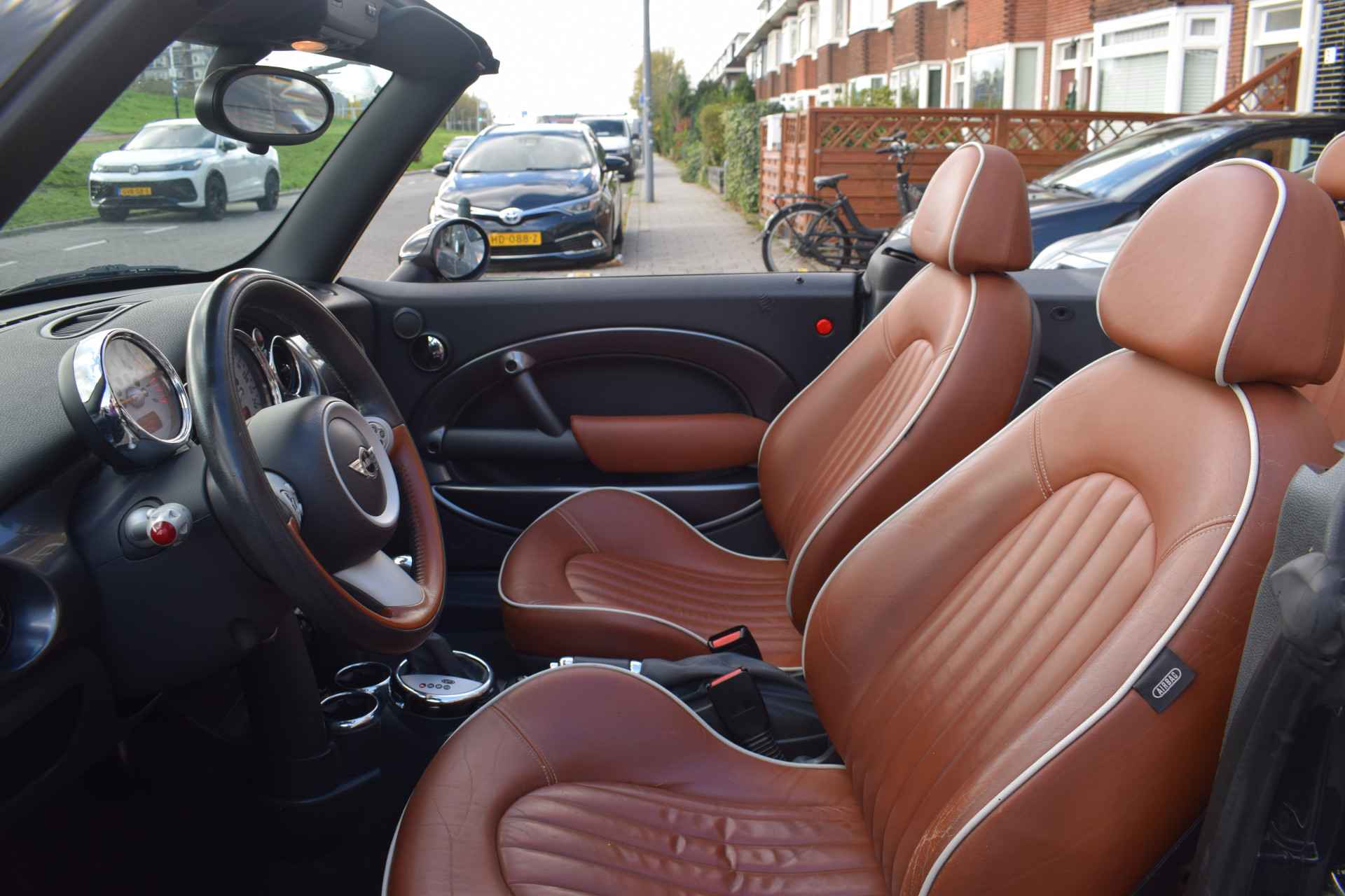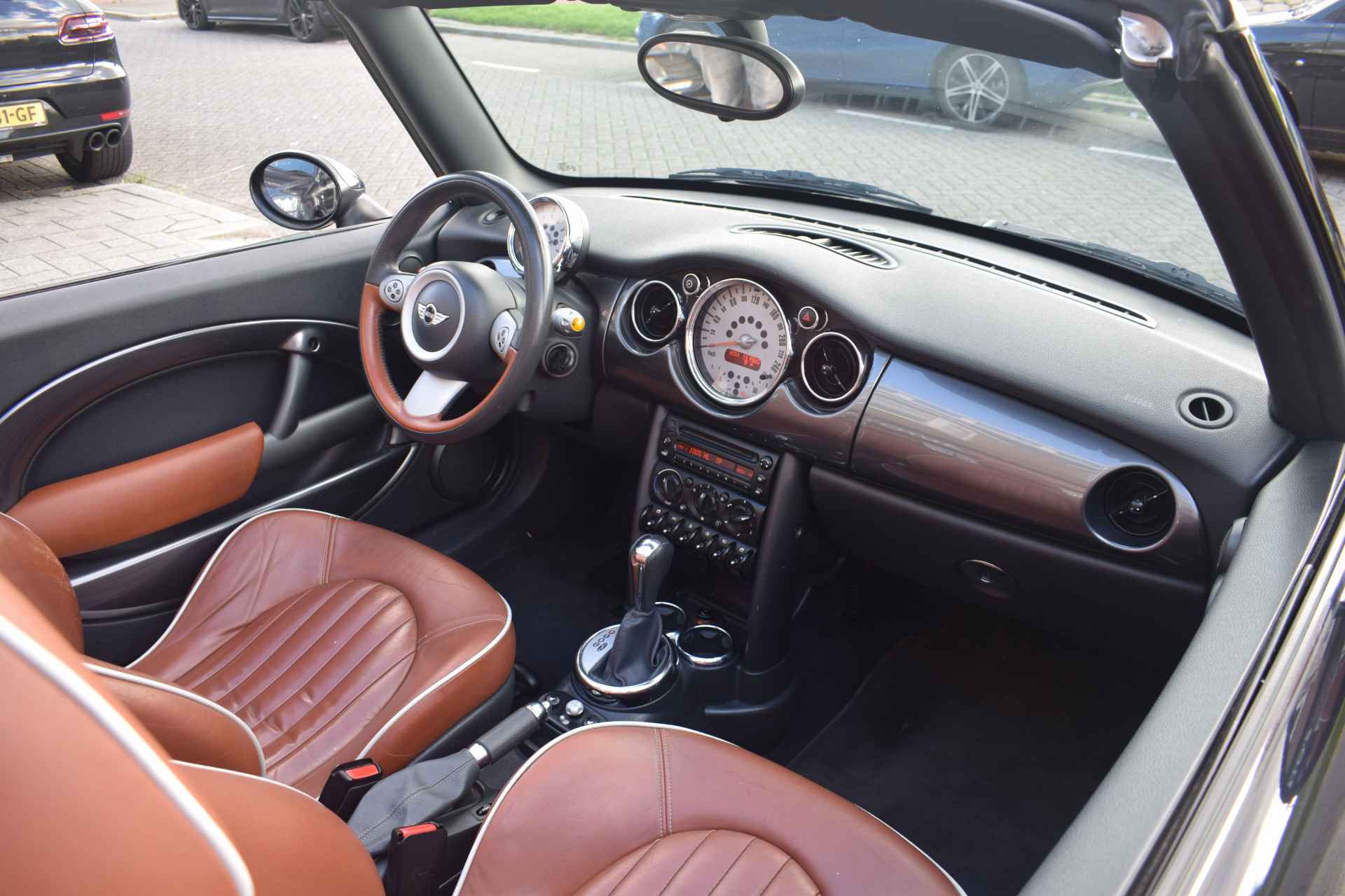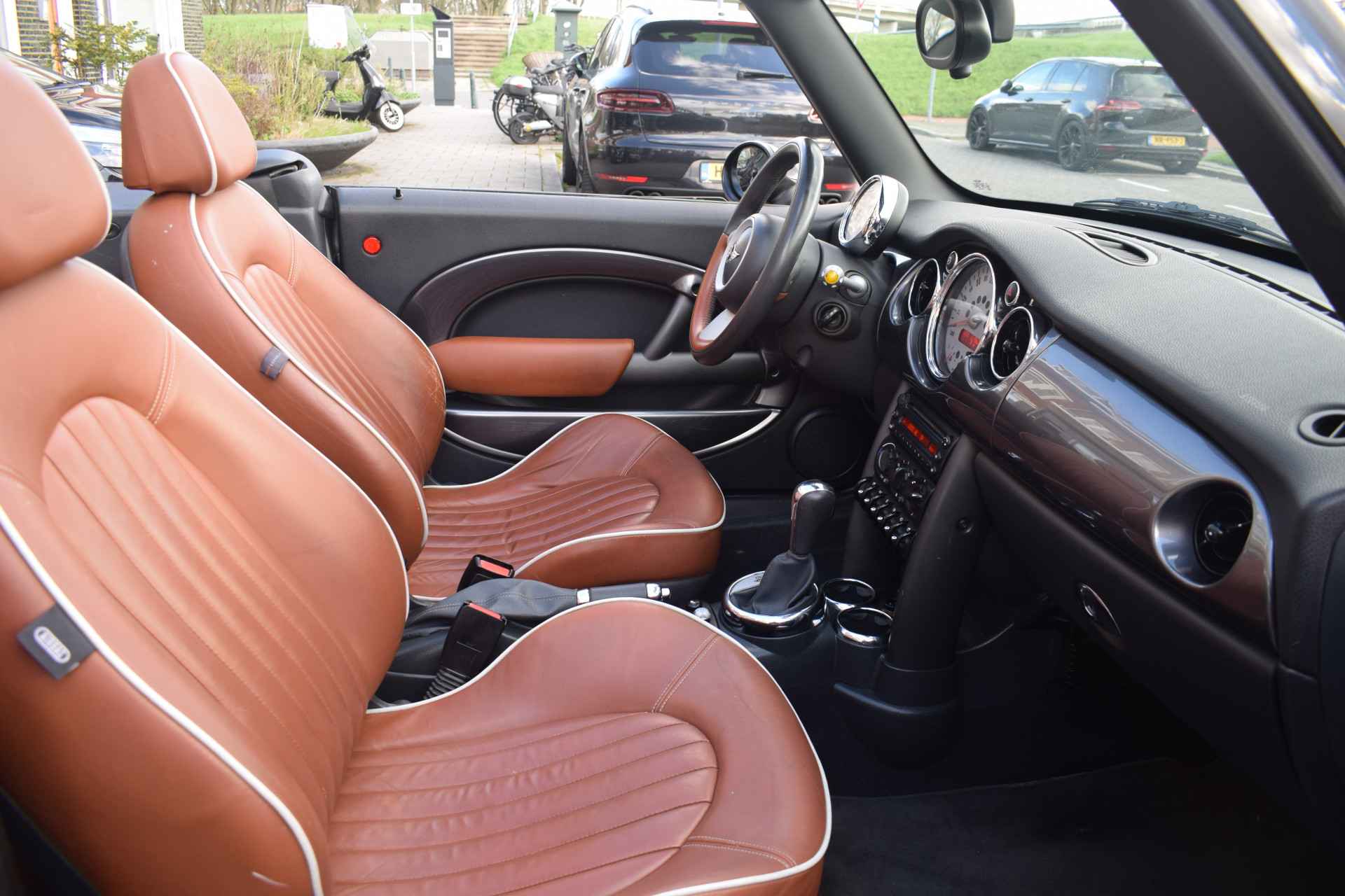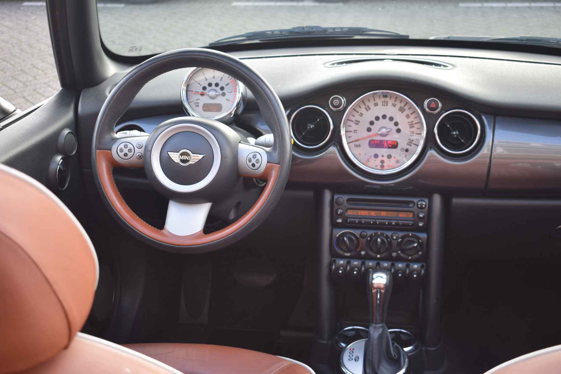 Zodra de zon zich laat zien, kunt u heerlijk genieten achter het stuur van deze cabriolet. Zijn dynamische uiterlijk maakt al direct duidelijk wat voor rijervaring u van deze MINI Cabrio mag verwachten: pure sportiviteit. De aandrijving van deze MINI wordt verzorgd door een viercilinder benzinemotor en een automatische transmissie. Een weldaad voor u en uw bijrijder: deze MINI Cabrio heeft verwarmbare voorstoelen. De elektrische kapbediening is een technisch hoogstandje: het dak opent en sluit zonder dat u hoeft uit te stappen.