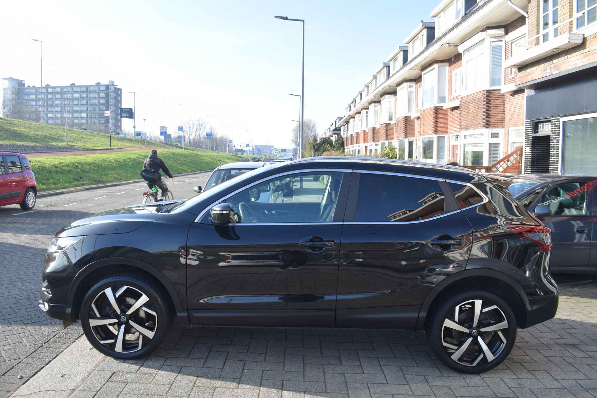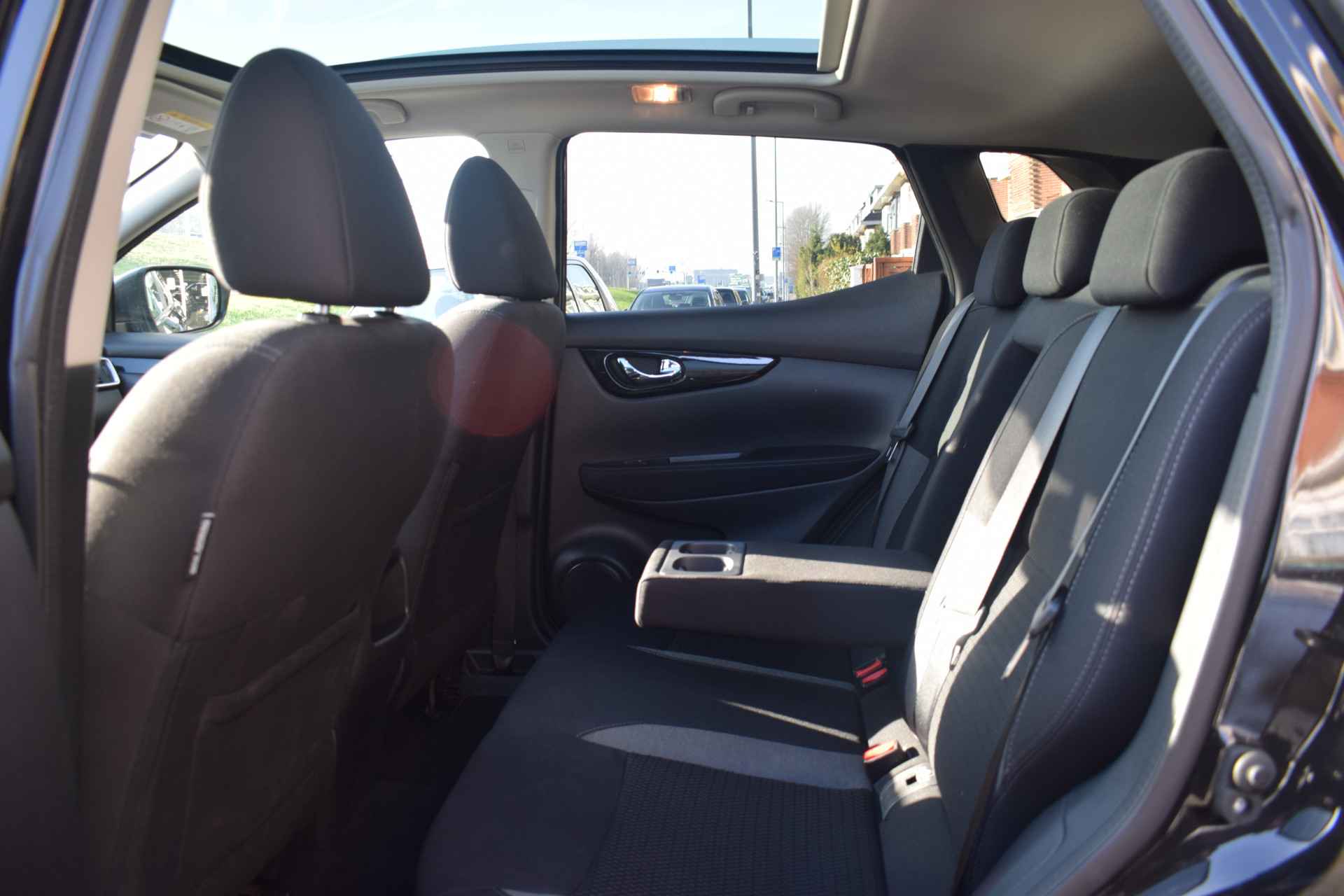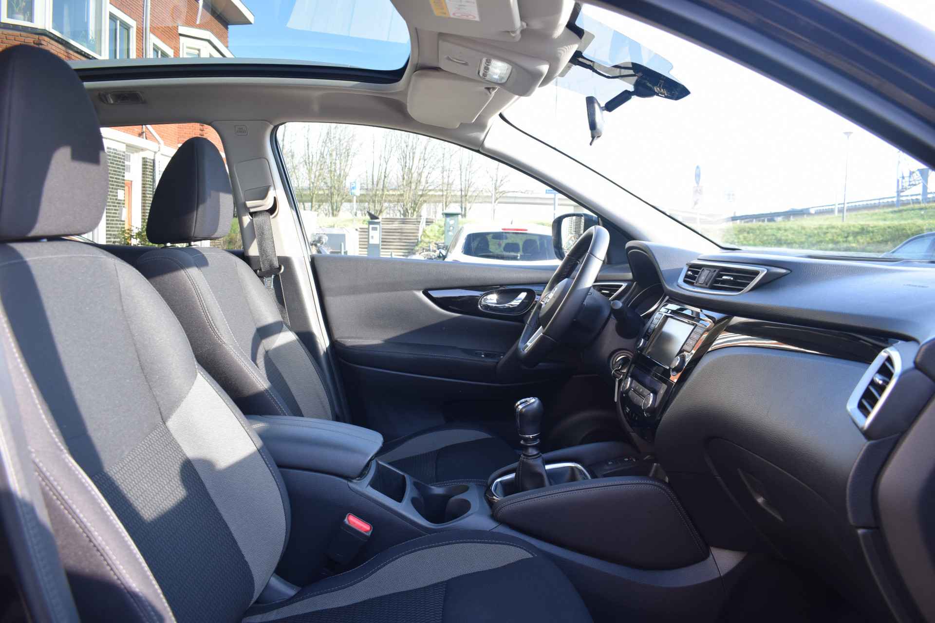 Plaats voor vijf personen of genoeg plek voor uw aankopen bij de bouwmarkt, de veelzijdige Nissan Qashqai biedt het allemaal. Het is een krachtige viercilinder benzinemotor die deze SUV aandrijft. Het glazen panoramadak geeft ook doordeweeks een vakantiegevoel. Wat een licht en zicht! Tot de uitrusting van deze Nissan behoren ook 17 inch lichtmetalen velgen, LED-dagrijverlichting, in hoogte verstelbare passagiersstoel, donker getint glas achter, in delen neerklapbare achterbank en LED-achterlichten.