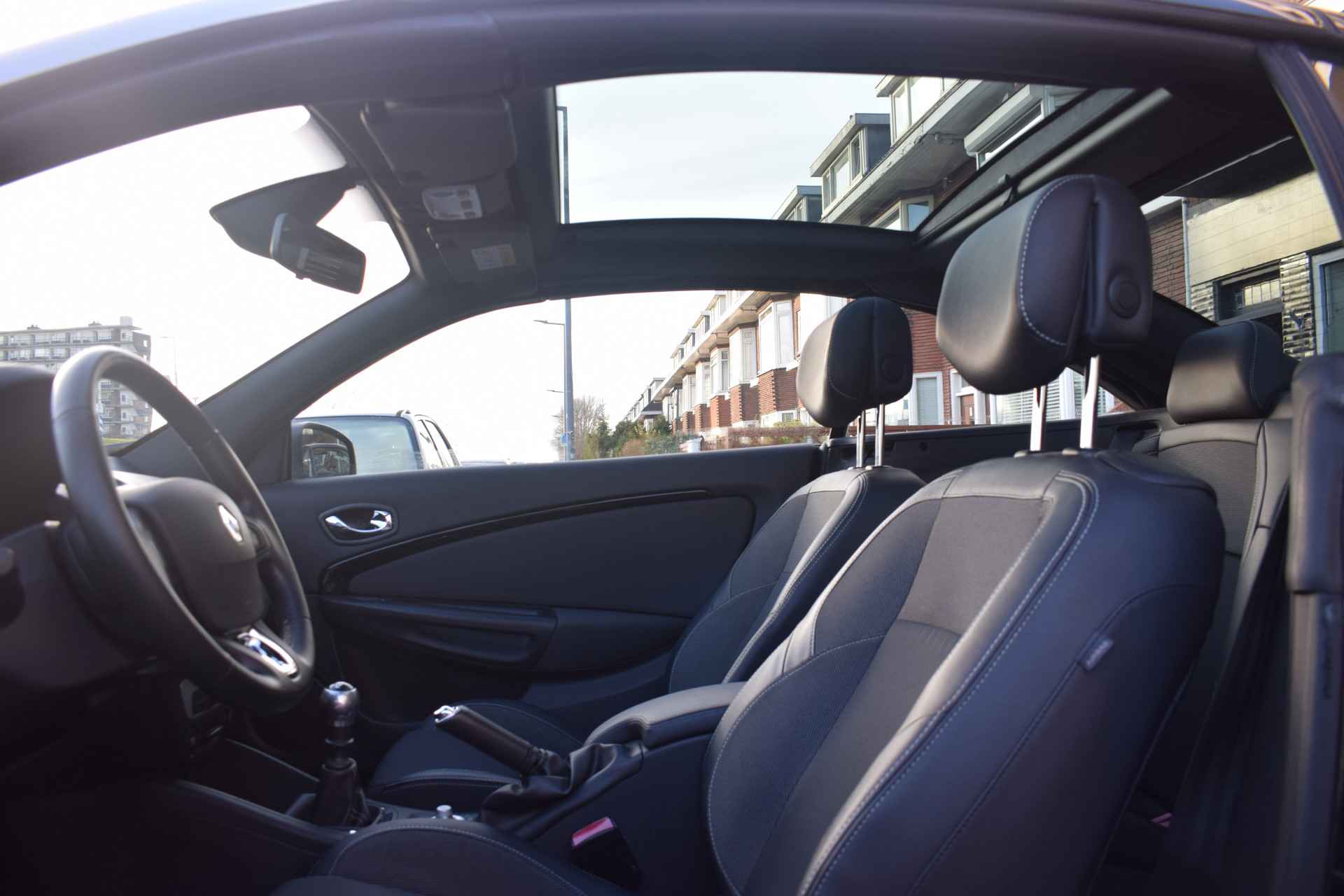 Naast de routeinformatie van het navigatiesysteem kunt u muziek via het audiosysteem ook online beluisteren via bluetooth. Natuurlijk is er ook automatische airconditioning aanwezig. U kunt bij het inparkeren natuurlijk niet aan alle kanten ogen hebben. Daarom is deze Renault Mégane Coupé-Cabriolet voorzien van parkeersensoren! De aanwezige cruise control scheelt lekker in brandstofkosten. En ook bij de flitspaal. Gemak staat voorop bij deze Renault Mégane Coupé-Cabriolet. Bijvoorbeeld merkbaar aan de keyless entry. Extra opties op deze auto zijn: automatisch dimmende binnenspiegel, lederen stuur en centrale deurvergrendeling met afstandsbediening.
