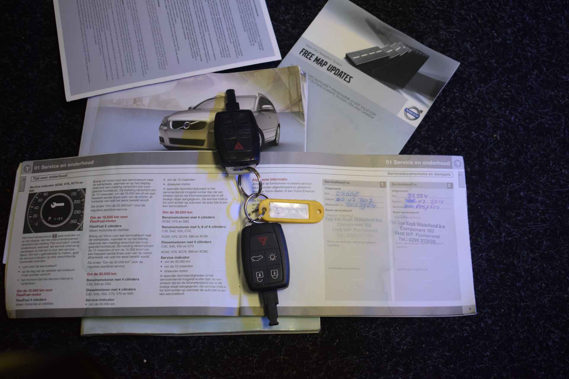 Terwijl het navigatiesysteem met harde schijf de ideale route voor u uitstippelt, geniet u van de kwaliteit van het audio-installatiesysteem. De bediening is bovendien gemakkelijk via knoppen op het stuur. Electronic climate control regelt volautomatisch de temperatuur. U kiest de gewenste temperatuur en het systeem doet de rest. Soms heeft u meer parkeerruimte dan u denkt. Maar soms ook niet. De parkeersensoren vertellen precies hoeveel. Natuurlijk is een complete auto als deze ook voorzien van sensoren die de omgeving in de gaten houden. Deze Volvo heeft niet alleen een automatisch inschakelbare verlichting aan boord, maar ook een regensensor. Voor de lange ritten is de cruise control een verademing. En dan is deze auto ook nog eens voorzien van buitentemperatuurmeter, automatisch dimmende binnenspiegel, centrale deurvergrendeling met afstandsbediening, bagage afdekhoes, boordcomputer en lederen versnellingspook.
